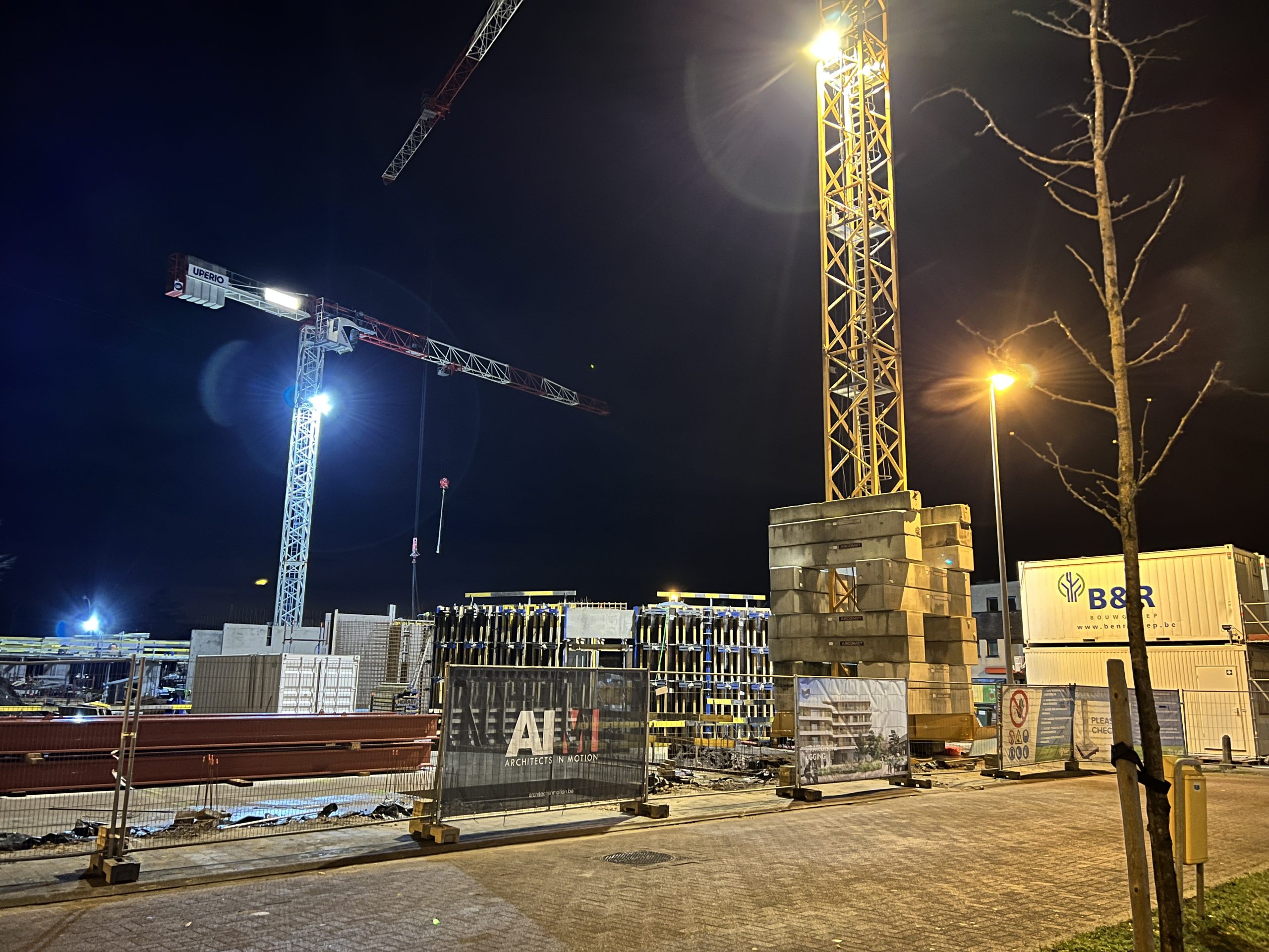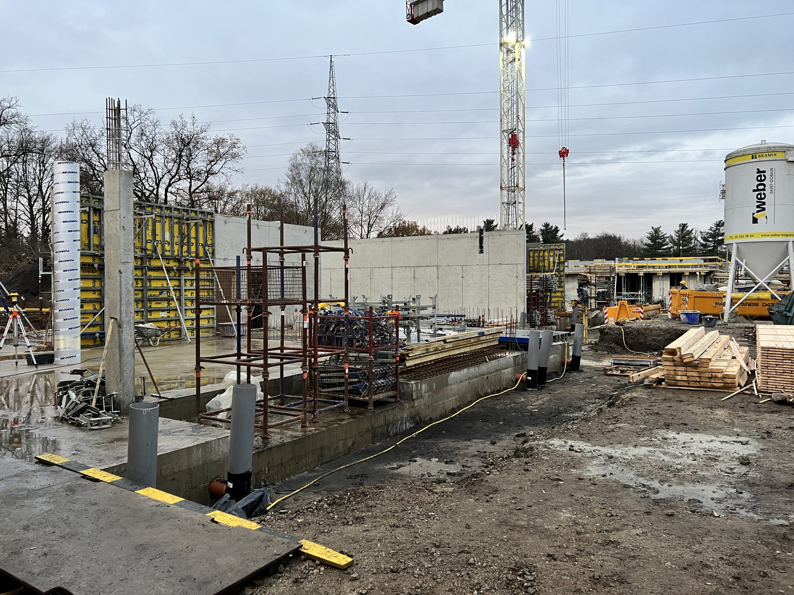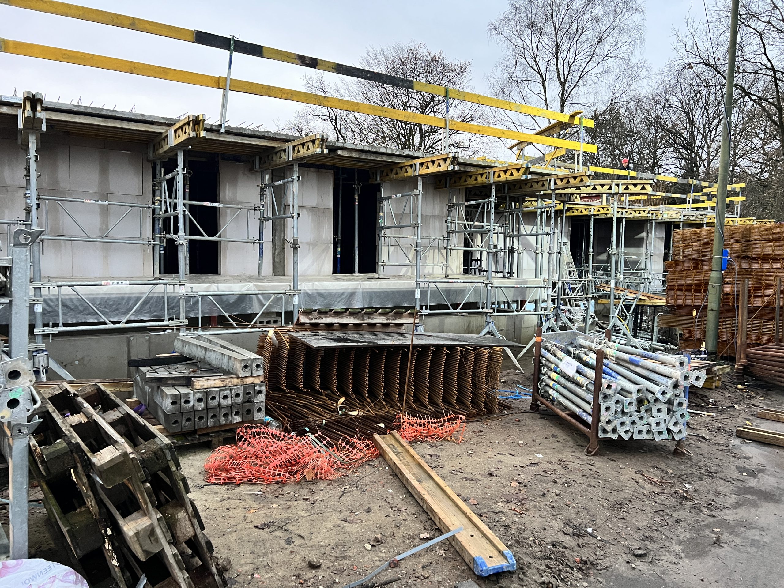 Eerste prefab-elementen geplaatst, nog 265 stuks te gaan. Laatste opstort vloerplaat, van 2022, voorbereid. Aanstaande woensdag betonstort. Aansluitend de werf voorbereiden op een welverdiend kerstverlof.