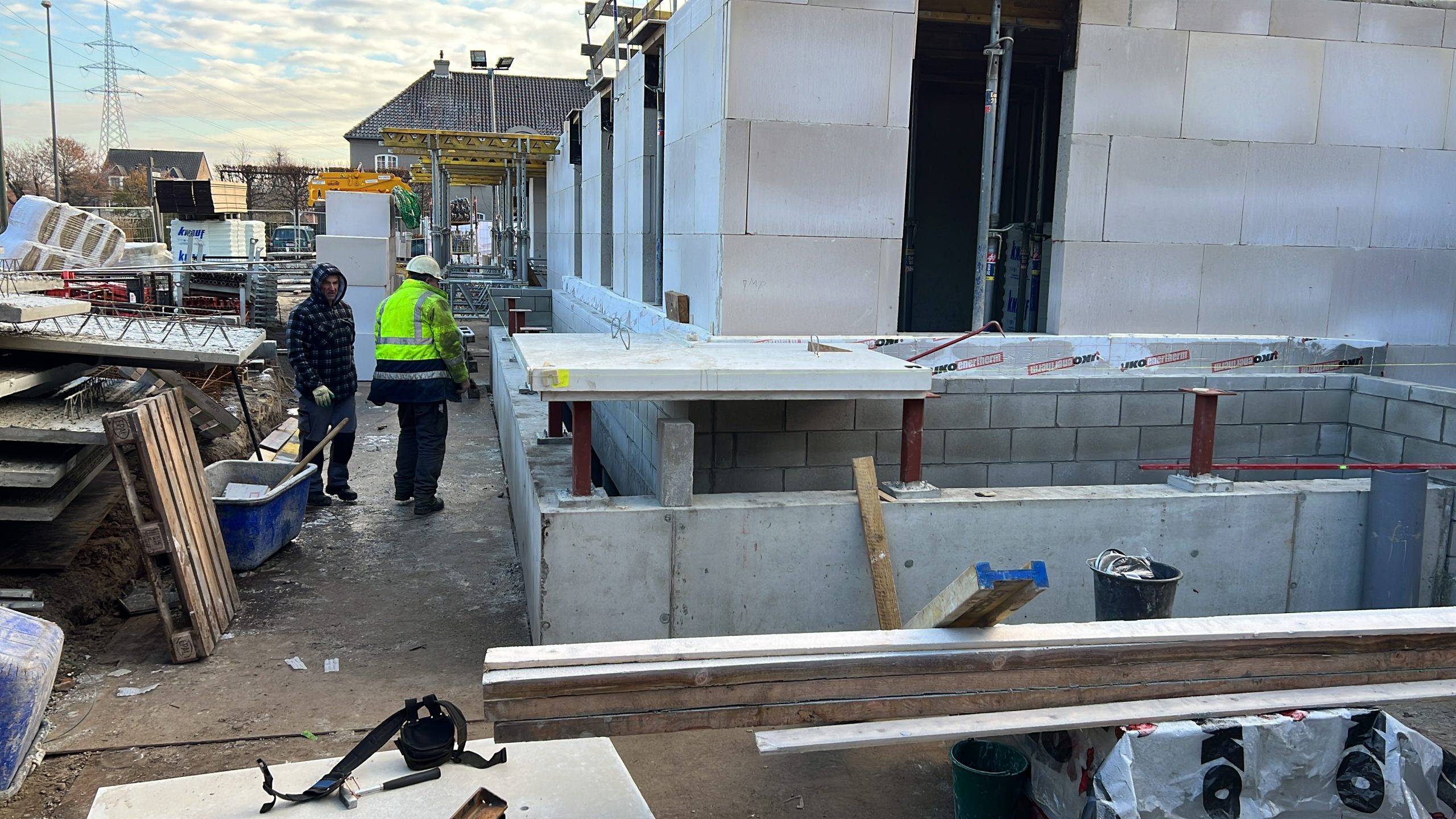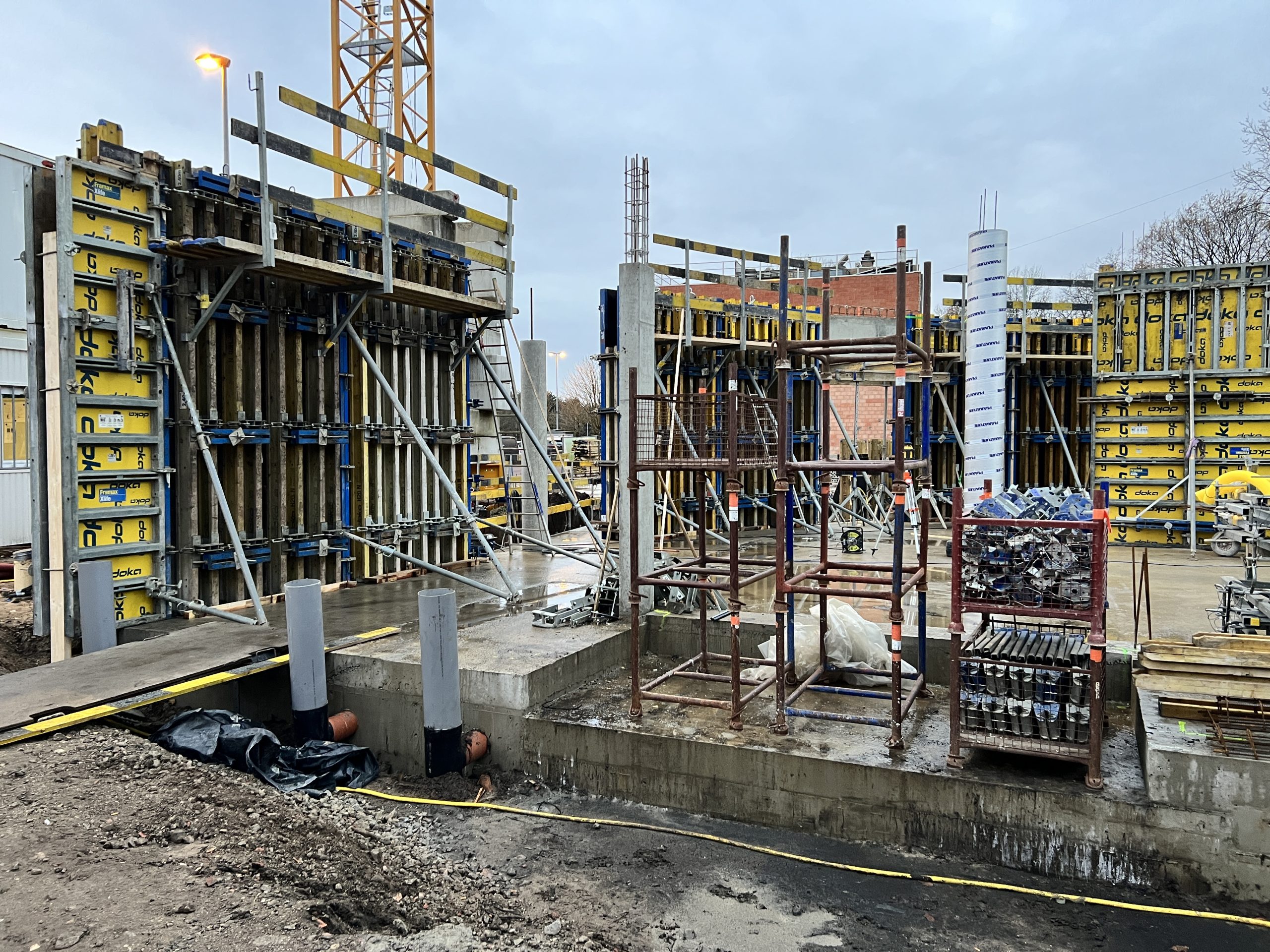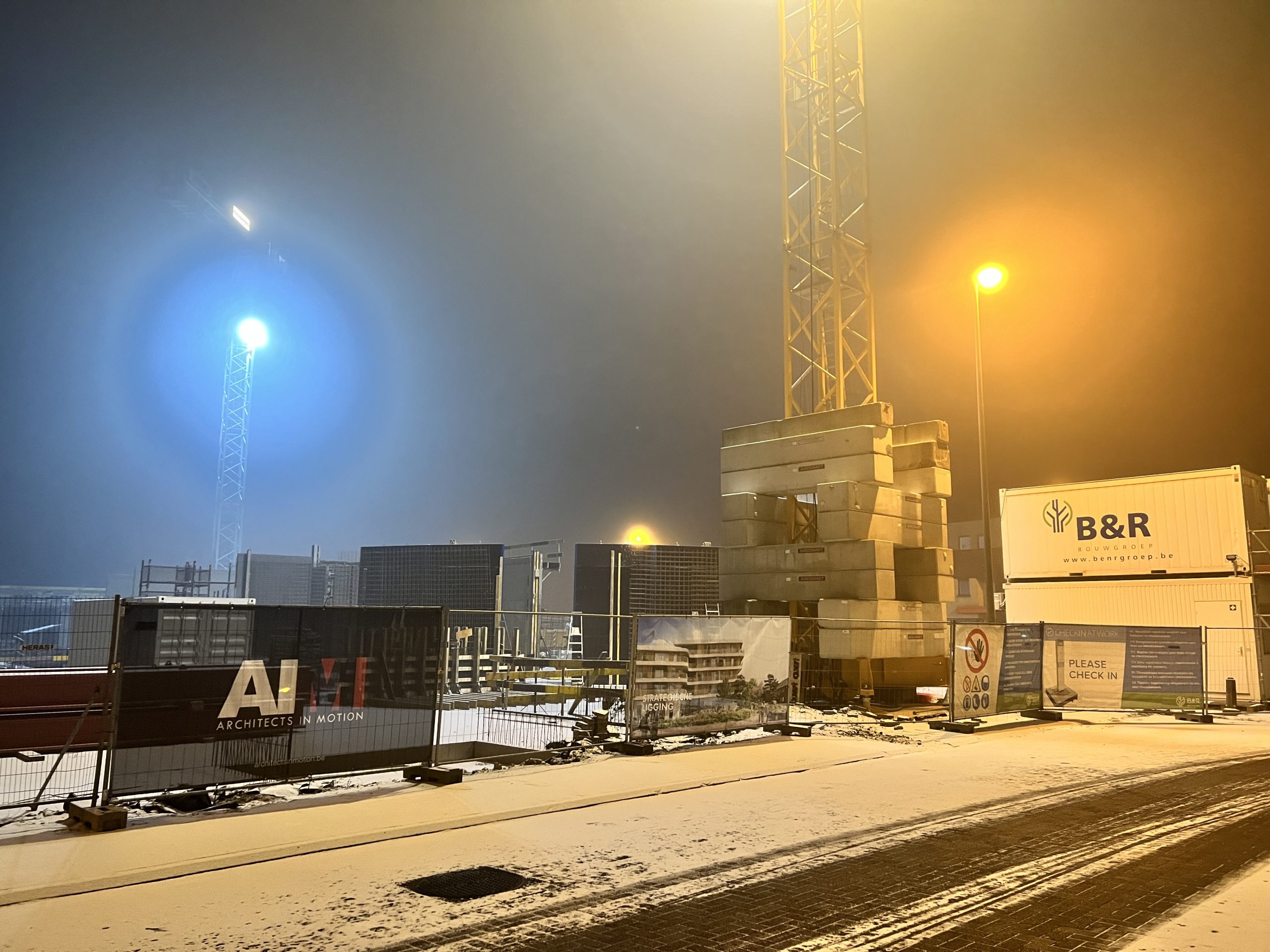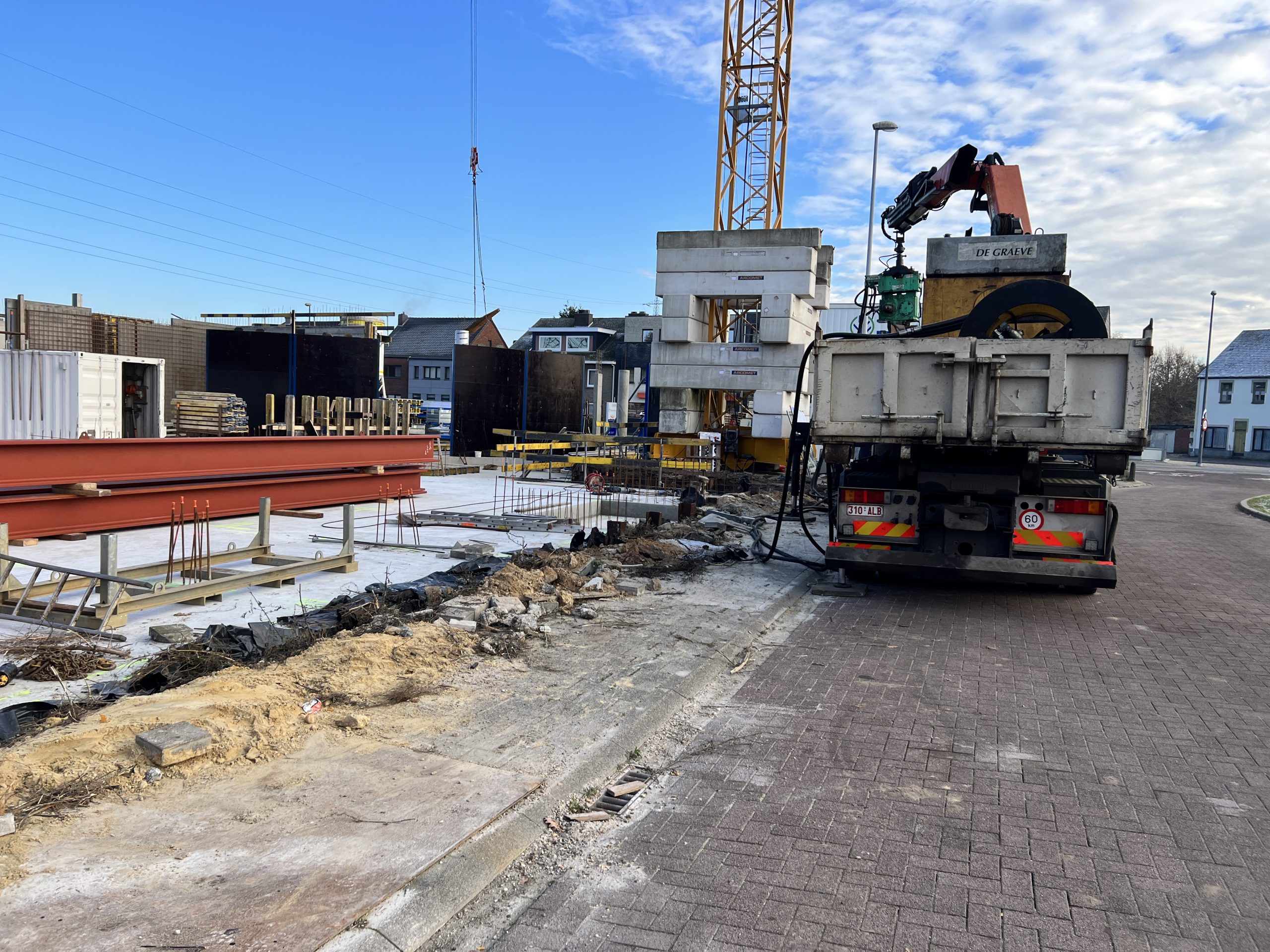 Eerste prefab-elementen geplaatst, nog 265 stuks te gaan. Laatste opstort vloerplaat, van 2022, voorbereid. Aanstaande woensdag betonstort. Aansluitend de werf voorbereiden op een welverdiend kerstverlof.