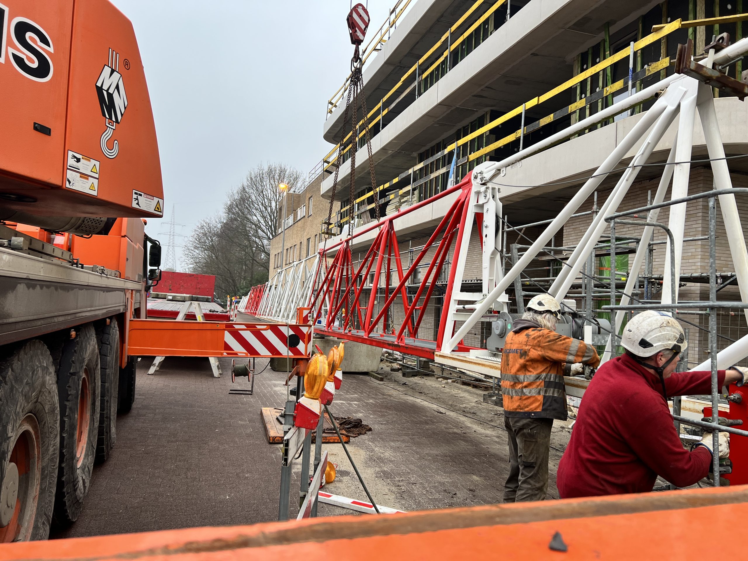 • De giek van de torenkraan wordt gedemonteerd in secties met behulp van geschikte hijsapparatuur. Dit wordt meestal gedaan in omgekeerde volgorde van de montage.