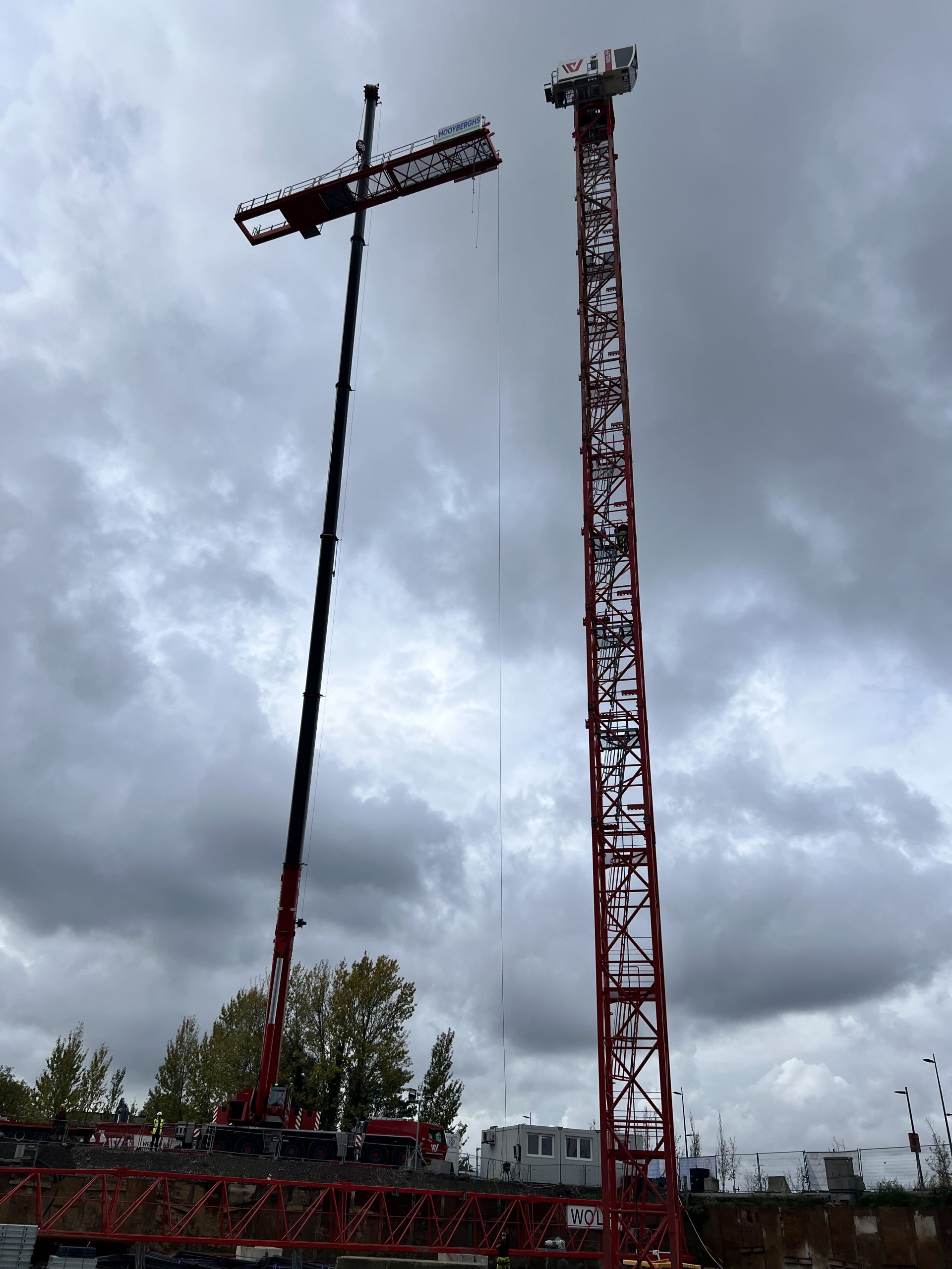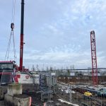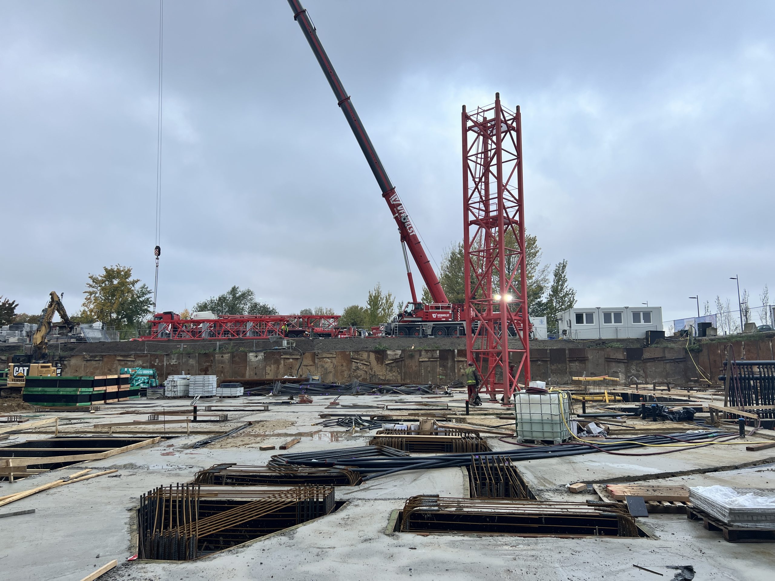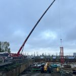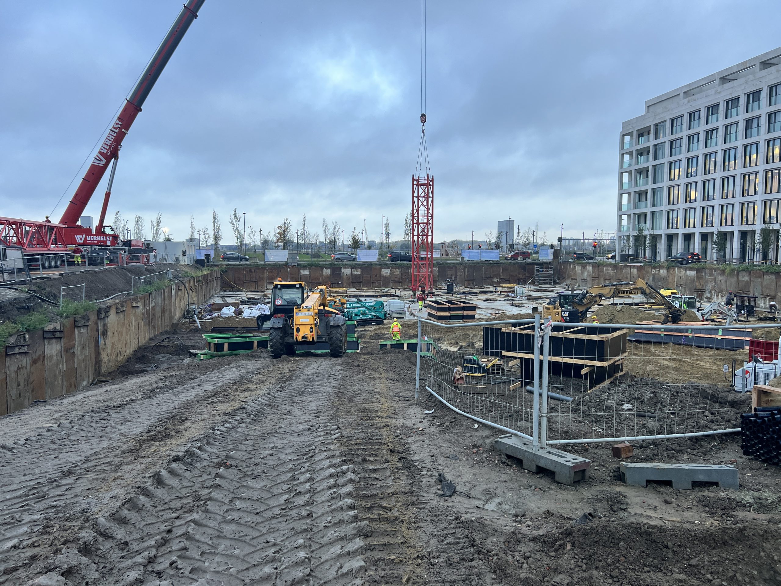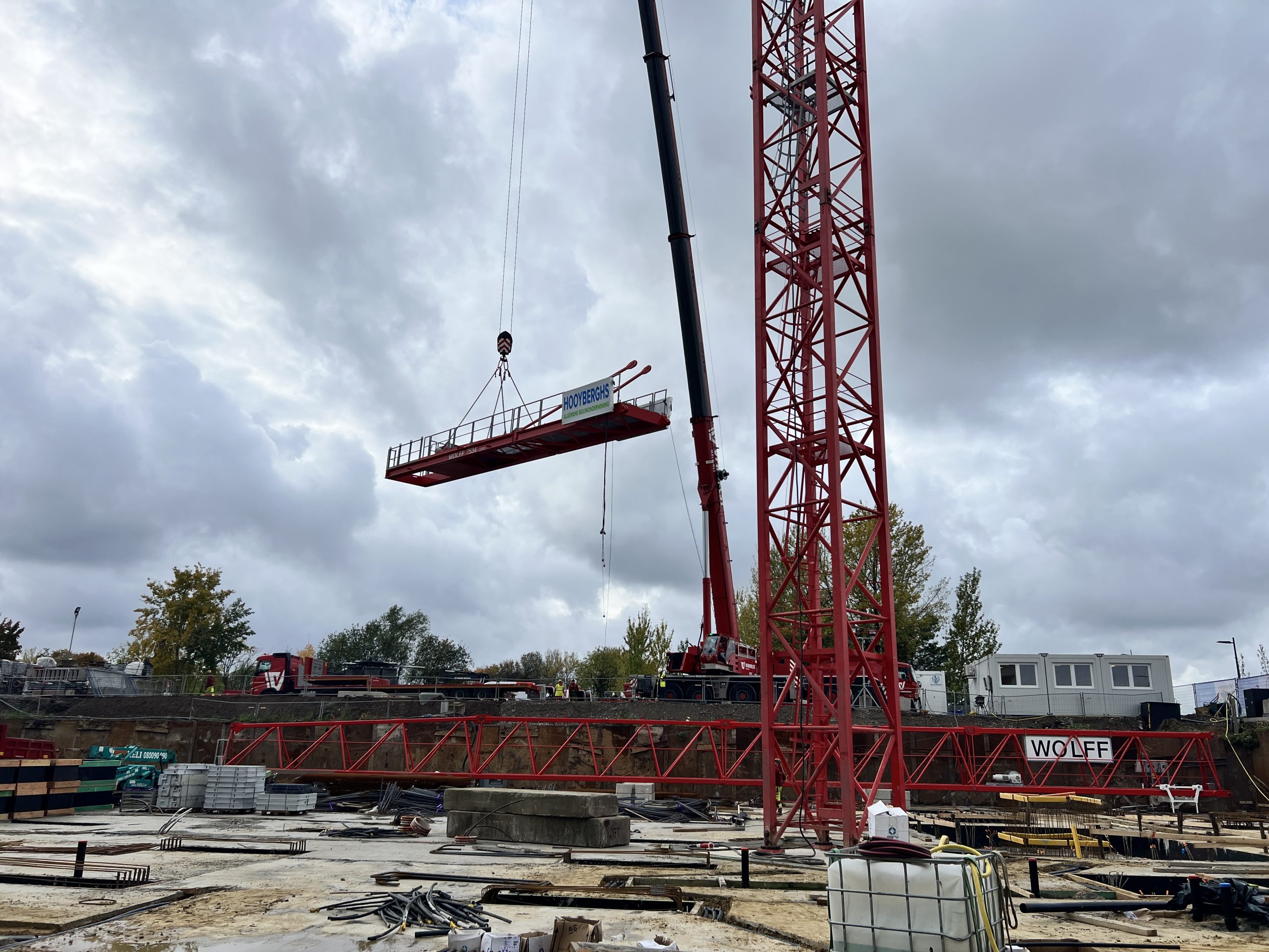 Vroeg in de ochtend hing er al een gespannen maar opgewonden sfeer op onze werf te Nieuw Zuid. De vrachtwagens met kraanonderdelen reden één voor één het terrein op, terwijl de ploeg zich klaarmaakte voor de montage. De zon brak net door de wolken toen de montagekraan, 300 T, zijn eerste beweging maakte – langzaam, precies en indrukwekkend.